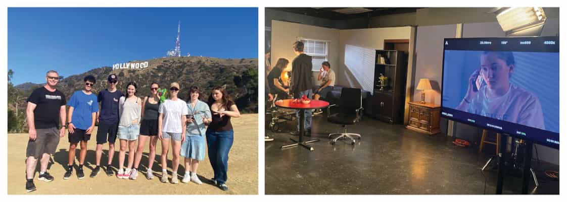 Media Studies Hollywood Trip During the school holidays, a small group of students and staff went to Hollywood to immerse themselves in the media industry. A workshop facilitated by the New York Film Academy engaged learning into cinematography using industry standard equipment. A studio tour at Warner Brothers and a visit to Universal Studios were highlights for all. We also spent time at the Academy Award Museum, Hollywood Museum and the world famous TCL Theatre, absorbing displays from films such as ‘Jaws’ and ‘Barbie Movie’. In amongst these visits were wonderful tours of the Hollywood Hills, Hollywood Boulevard, Walk of Fame, Santa Monica Pier, Griffith Observatory and a bike tour down Venice beach. A great time was had by all supplemented by our accommodation at the Magic Castle Hotel with unlimited snacks, drinks and ice cream along with many shopping experiences at The Grove and The Citadel Outlets. A great opportunity for the students to engage with the media industry and extend their knowledge and passions.  |
