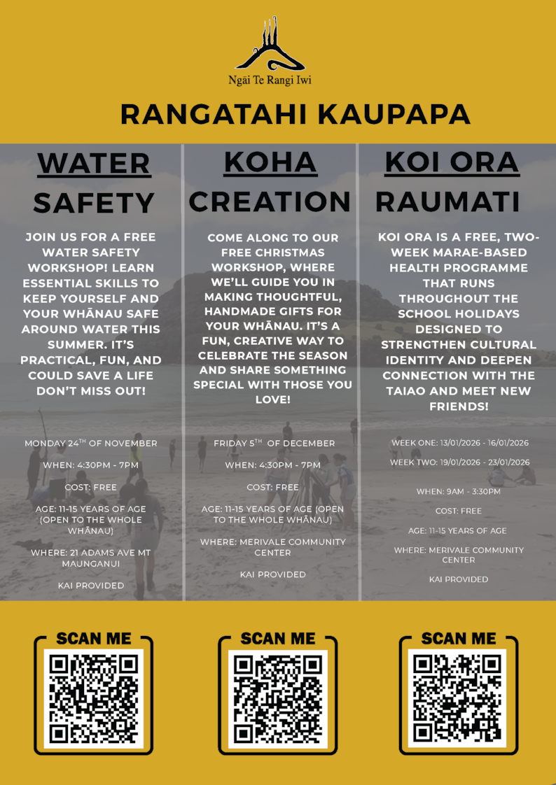 - Ngāi Te Rangi - Upcoming Rangatahi Kaupapa