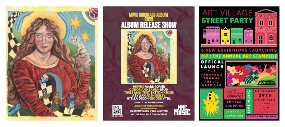 Album Art by Florence Steer, Cover Design by Brooklyn Taylor, Photography by Lulu Boorman SunLive did a great write-up about the album. If you would like to read more about it, click here. We are hosting an album release concert at Mount Maunganui College on Thursday, 11 December at 6pm. This will be a free outdoor BYO picnic event, on the music block grass area. All are welcome to attend. The album will be released on streaming platforms and also as a limited-edition collectable cassette tape for $20 each. Email music@mmc.school.nz to order a copy. Congratulations to our MMC Street Band, who won a national award at the Musicworks Ensemble Festival Aotearoa last term. They received the National Spirit of the Festival award, which is a first for the band and our school. Huge congratulations to all of the students involved! If you would like to see them live again, they will be performing at the Art Village Street Party of the Year at the historic village on Saturday, 29 November 2025 from 10.30am. For further information, see the poster below. Music Lesson Registration is Coming Soon for 2026! Spots are limited and will be first-come, first-served. You must use your Kindo login to apply. Please make sure your Kindo account is created, and watch for our email announcing when registrations are open.  |