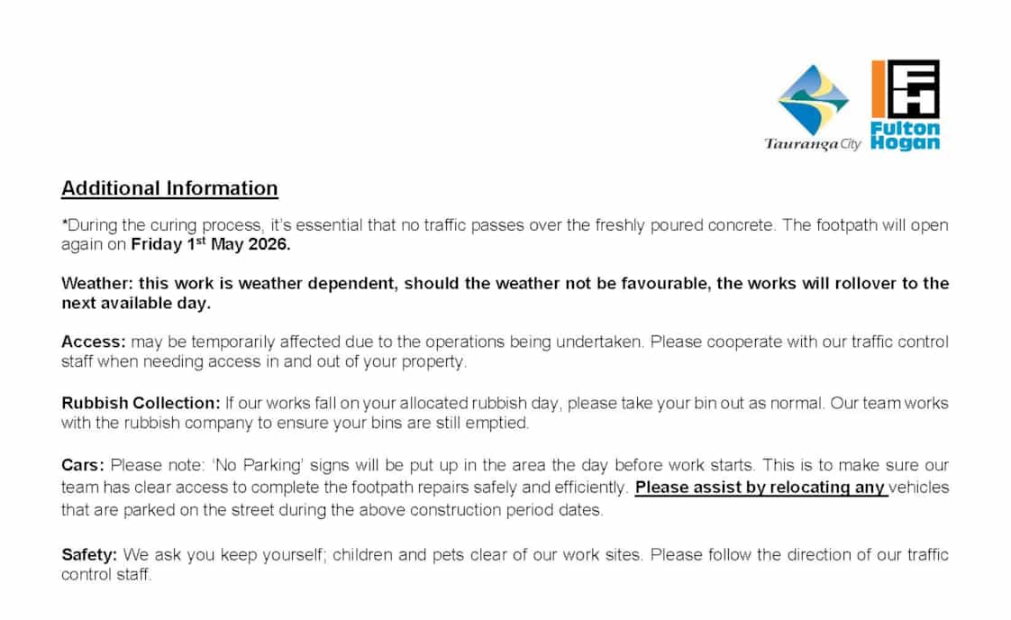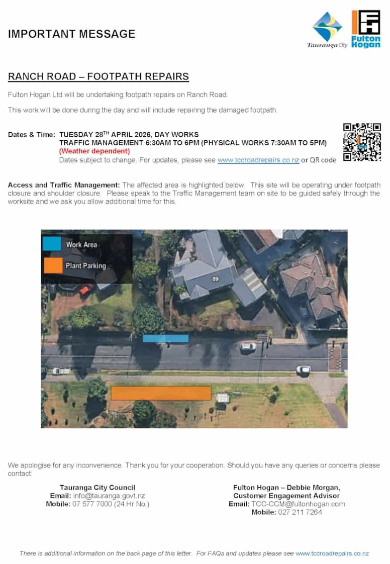 - Tauranga City - Ranch Road Footpath Repairs